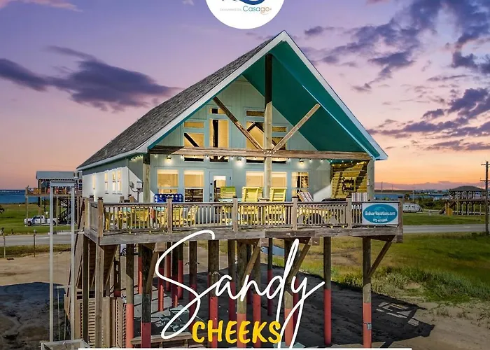 **Welcome to Beachfront Hottub Gameroom Cargolift - Sandycheeks Bolivar Peninsula, where coastal charm meets modern luxury.** Nestled along the tranquil shores of the Bolivar Peninsula, this enchanting retreat invites guests to bask in the sun and revel in the beauty of the Gulf Coast. The unique combination of a beachfront location, an inviting hot tub, and entertainment options make this a perfect getaway for families and couples alike.